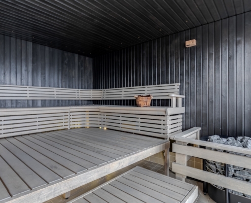 Sauna Pasilan mökkihenkinen pukuhuone Helsingissä.